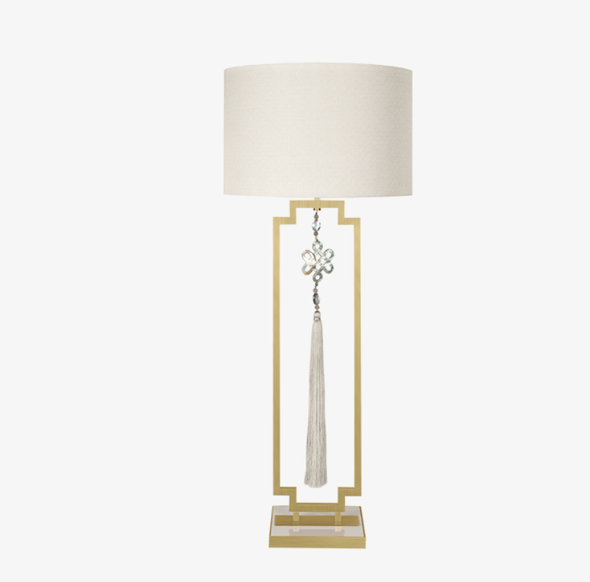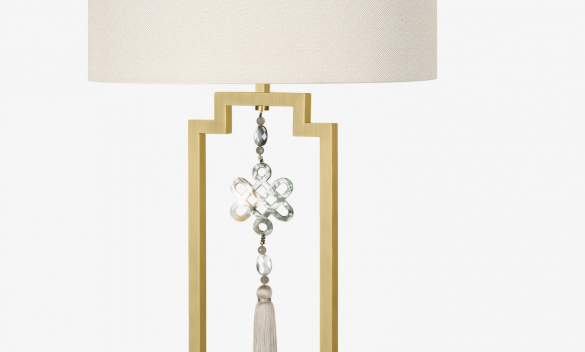 Named after the vibrant capital city of Vietnam, the HANOI table lamp strikes an Oriental note that's in keeping with its glamorous moniker. Details include an ornamental pendant, brass and lacquered wood structure and double-silk shade.