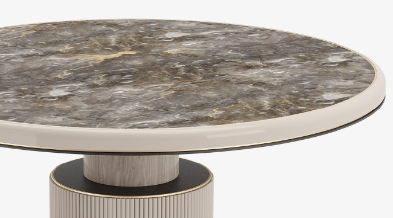 Pared back yet ready to make a statement, the HAMPTONS pedestal table is all about eye-catching grace. A smooth top meets a textured base with accents of stone and brushed brass for an elegant finish.