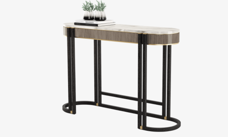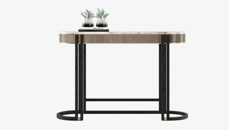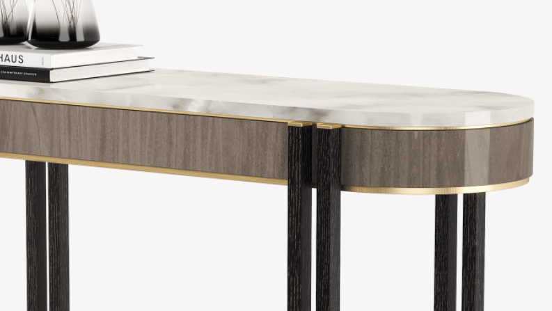 Ideally suited to hallways or transitional spaces thanks to its slimline form, the immaculate MELBOURNE console provides organisational and display space. Sculpted from solid wood and veneer, it's topped with a sleek stone surface that's cool to the touch.