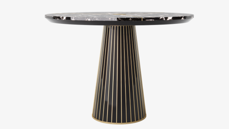 Dark and dramatic, the PINOT II's modernist silhouette is elevated through the application of mesmerising materials that include deeply patinated stone, glossy lacquered wood and graphically deployed brushed brass.