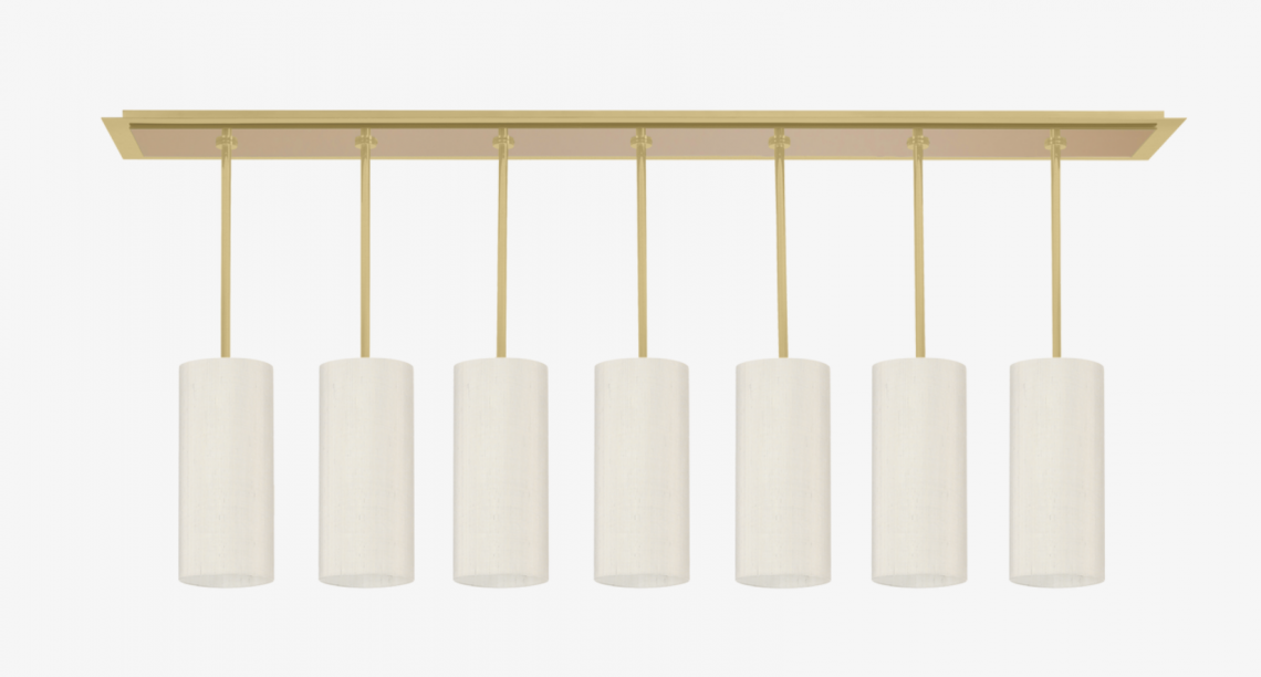 A neat row of seven slender shades in double silk permeate the NEPAL ceiling lamp with an orderly elegance that's visually arresting.