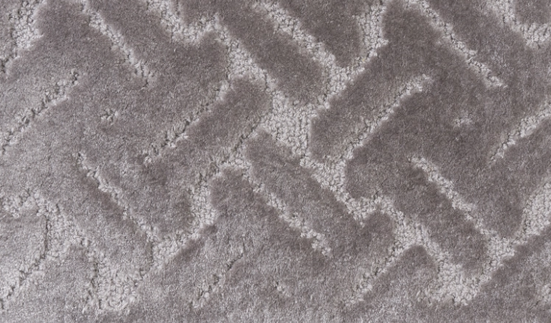 Adding a geometric vibe to floors, the botanical silk MILFORD rug features a cross-hatch pattern in contrasting tones of grey.