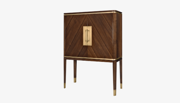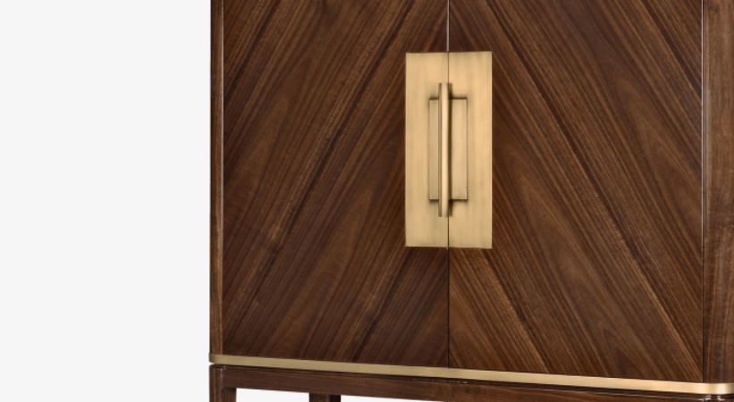 The timeless shape of the elegant SIENA Tall Cabinet is emphasised through the use of timeless materials, including rich wood veneer and lustrous brushed brass.