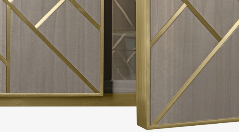 The sublime SIRMIONE tall cabinet makes its mark thanks to an intricate diamond-inspired design that enhances its doors and carries through to its characteristic handles.