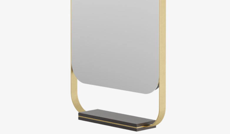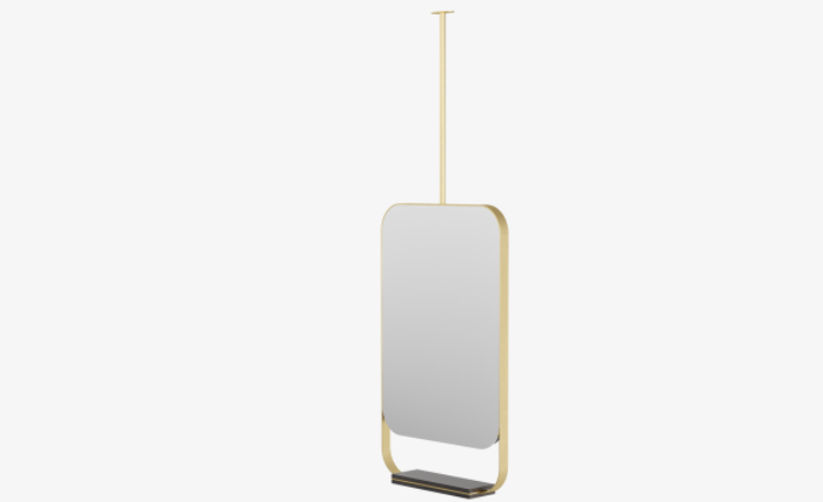 Distinguished by a ribbon-thin brass frame that incorporates a small wooden shelf, the BONDI mirror can be hung from the ceiling, offering you greater versatility when it comes to bathroom layout.