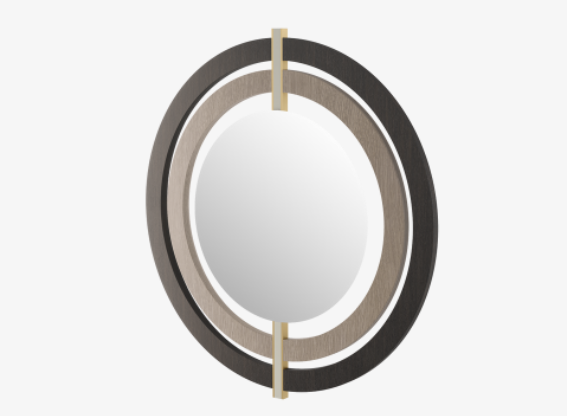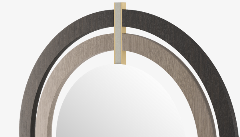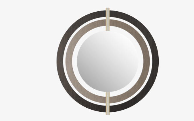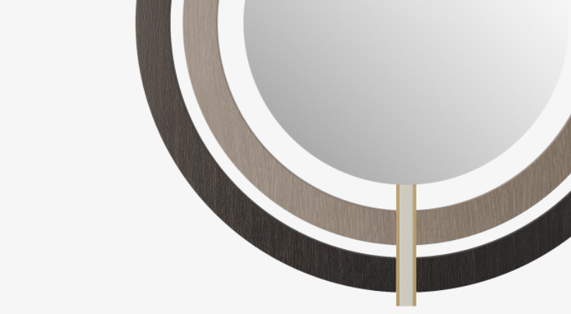 A series of neat, concentric circles creates a ripple-effect around the wall-hung BRESCIA’s central mirror. A deceptively simple design, it embraces an elevated materiality that includes leather, brass and wood veneer.