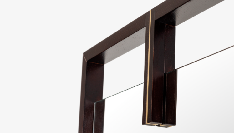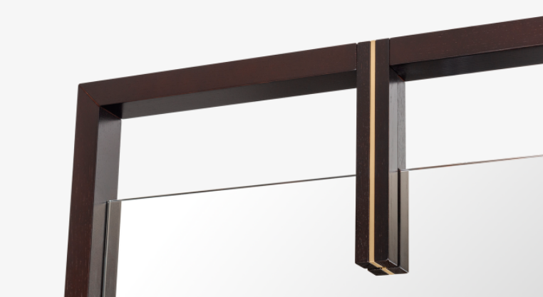Measuring 2,000 millimetres in length, the full-height LANCASTER Mirror effortlessly suspends an unembellished rectangle of clear glass within a frame of satin-finished wood veneer. Elegantly accented with brushed brass, the design manages to feel both delicate and reassuringly solid.