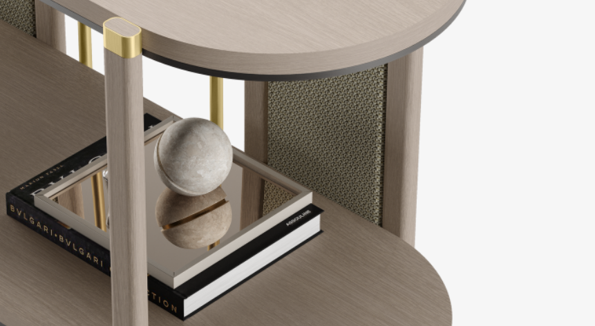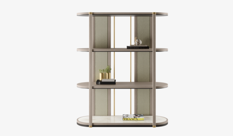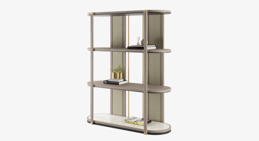 Made from wood and featuring a stone base, the freestanding FIRENZE bookshelf can be positioned against a wall or used as an elegant room divider. The generous shelf heights allow for the display of a variety of objects, while the back panels are inlaid with wallpaper, showcasing one of the innovative ways in which FRATO uses different materials.