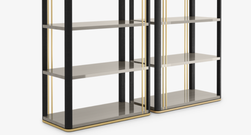 Statement storage doesn’t come much more timeless than the LUGANO bookcase, which features high-gloss wooden shelves and is embellished with delicate brass rods and whether lined with books or displaying a few treasured objects, they add instant character and interest.