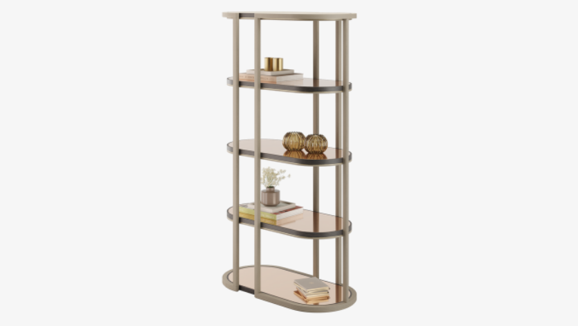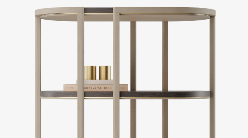 Sweeping curves define the outline of the sculptural OJAI bookcase, which features veneer shelves encased in a frame of gleaming brushed brass. Use a pair to create a striking centrepiece, or a single bookcase for an eye-catching standalone display.