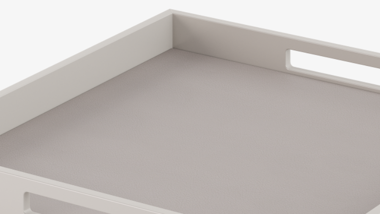 A perfect square, the AVEIRO I Tray is a chic way to arrange ornaments and accessories. Made from glossy lacquered wood, it’s inlaid with soft, tonal leather that’s embroidered with a cross sign.