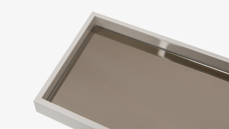 With their lacquered wood construction and bronze mirror inlays, our LASSA trays are both practical and beautiful. Use for displaying treasured objets or for elegant storage on a console or dresser.