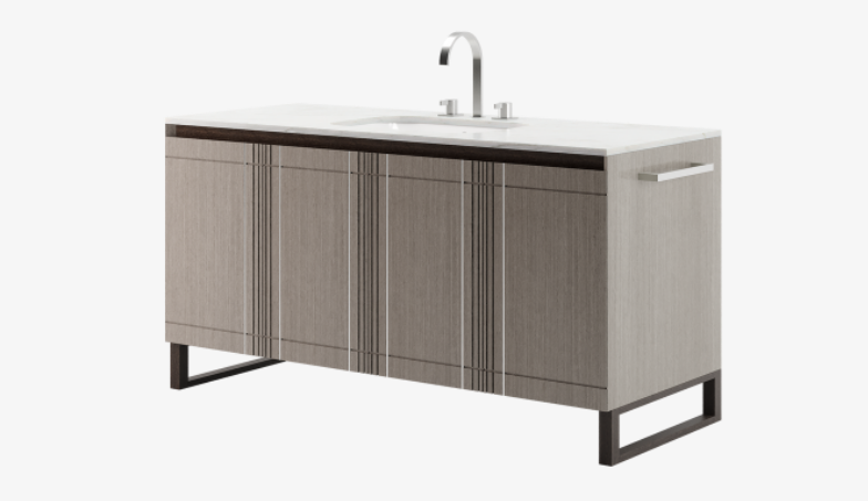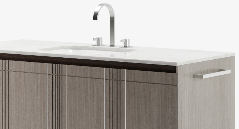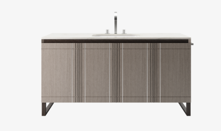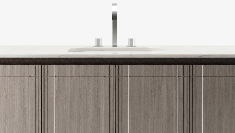A streamlined silhouette and rectilinear details distinguish the suave COVENTRY vanity unity, which offers a sizeable countertop and four doors of accessible and compartmentalised storage.