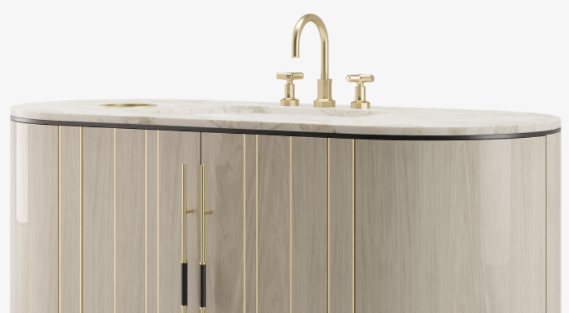 Featuring a glossy wood veneer structure, a smooth marble top, discrete door handles and a towel rail, the SALAMANCA vanity unit possesses an understated elegance that quietly speaks volumes. If more surface space is high on your bathroom wish list, look to the attractive SALAMANCA vanity unit, which has generous sink-side space that also incorporates a handy used-towel depository.