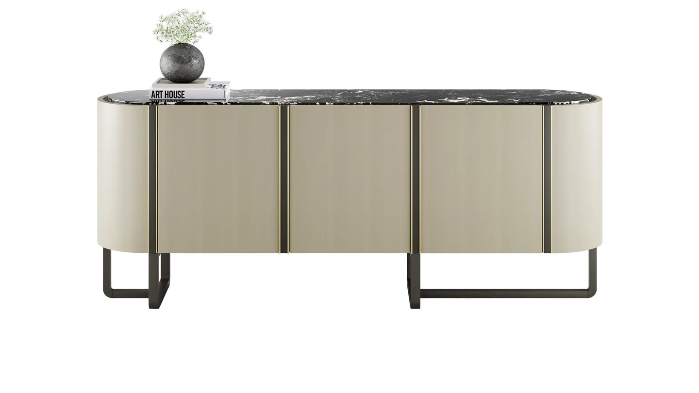 Combining cupboard and shelf space, the NASHUA II Sideboard is an elegant staple for your lounge or dining room. It's finished with stone inlay and brushed brass accents for an effortlessly sophisticated look.