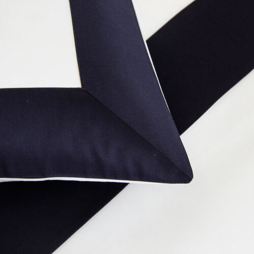 The Bold Pillowcase features soft, long-staple cotton sateen and a striking contrast border finished with a sleek simple stitch.