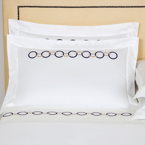 The Links Embroidery Sham is composed of smooth and lustrous long-staple cotton sateen and features a beautifully crafted chain embroidery on its front side.