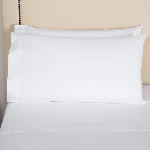 The Triplo Bourdon Pillowcase is crafted from smooth cotton poplin and has a remarkable sheen and brightness and finished with a three-line embroidery. 100% cotton. Made in Italy.