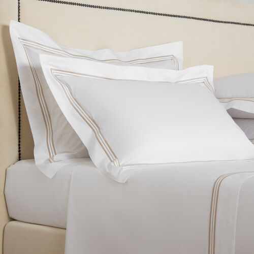 Soft and smooth with high shine, the Triplo Bourdon Sham is crafted from pure cotton poplin and embellished with a three-line embroidery