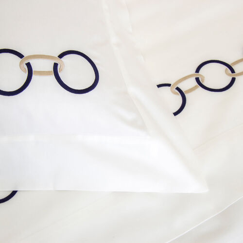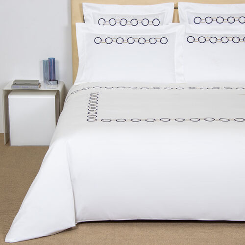 The Links Embroidery Duvet Cover features an elegant dual-tone chain design on soft and silky cotton sateen.