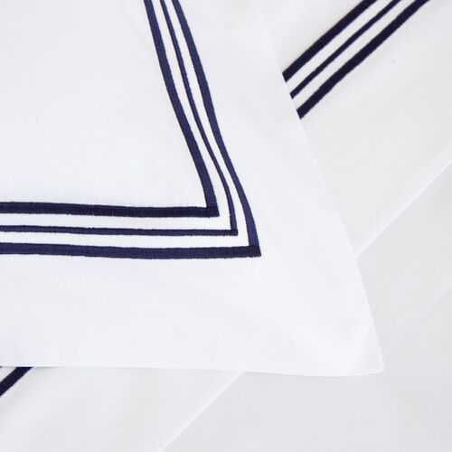 Soft and smooth with high shine, the Triplo Bourdon Duvet Cover is crafted from pure cotton poplin and embellished with a three-line embroidery.
