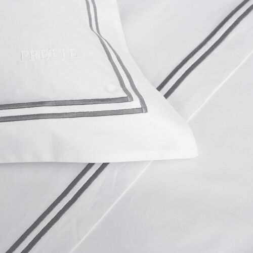 The Hotel Classic Duvet Cover from Frette is composed of crisp cotton percale and features two embroidered distinctive borders. Subtle colours effortlessly complement every bedroom interior.