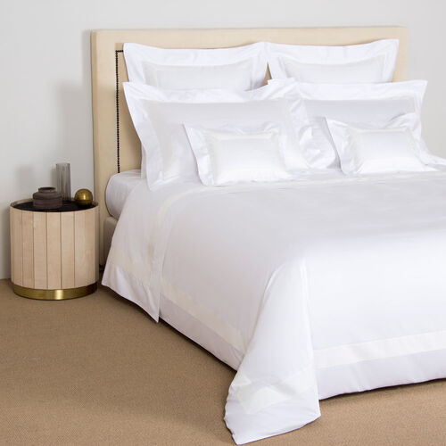 The Bicolore Duvet Cover features an elegant contrasting border finished with Frette's signature open hemstitch on pure long-staple cotton sateen. Ideal for any classic bedroom, this delicate design will provide your space with a luxurious ambience. Try neutral tones for a subtle accent, or bold colours to bring any bedroom to life. 100% cotton. Made in Italy.