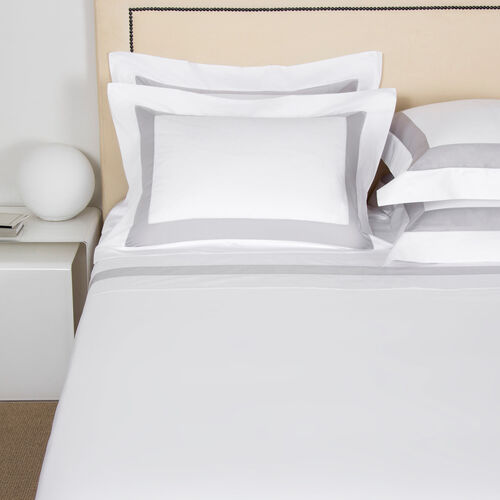 A sheet set in smooth, soft and lustrous cotton sateen featuring a contrasting border finished with Frette's signature open hemstitch. Bicolore, a Frette classic, provides a bold and minimal accent to any bedroom. This sheet set includes a top sheet, two shams, and a bottom sheet in pure long-staple cotton sateen. 100% cotton. Made in Italy.