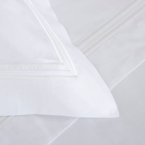 Soft and smooth with high shine, the Triplo Bourdon Sheet Set is crafted from pure cotton poplin - the perfect balance between percale and sateen - and embellished with a three-line embroidery.