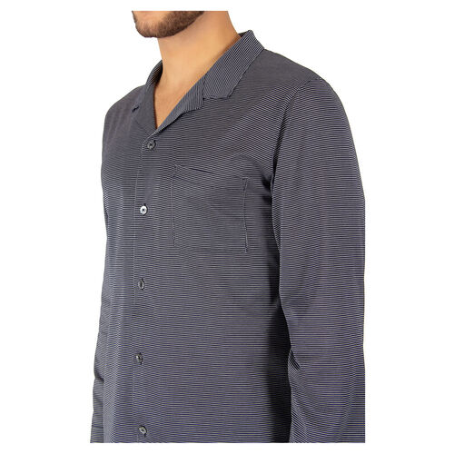 A classic collar pyjama shirt and pant set featuring an understated pattern. Composition: 100% cotton. Made in Italy.