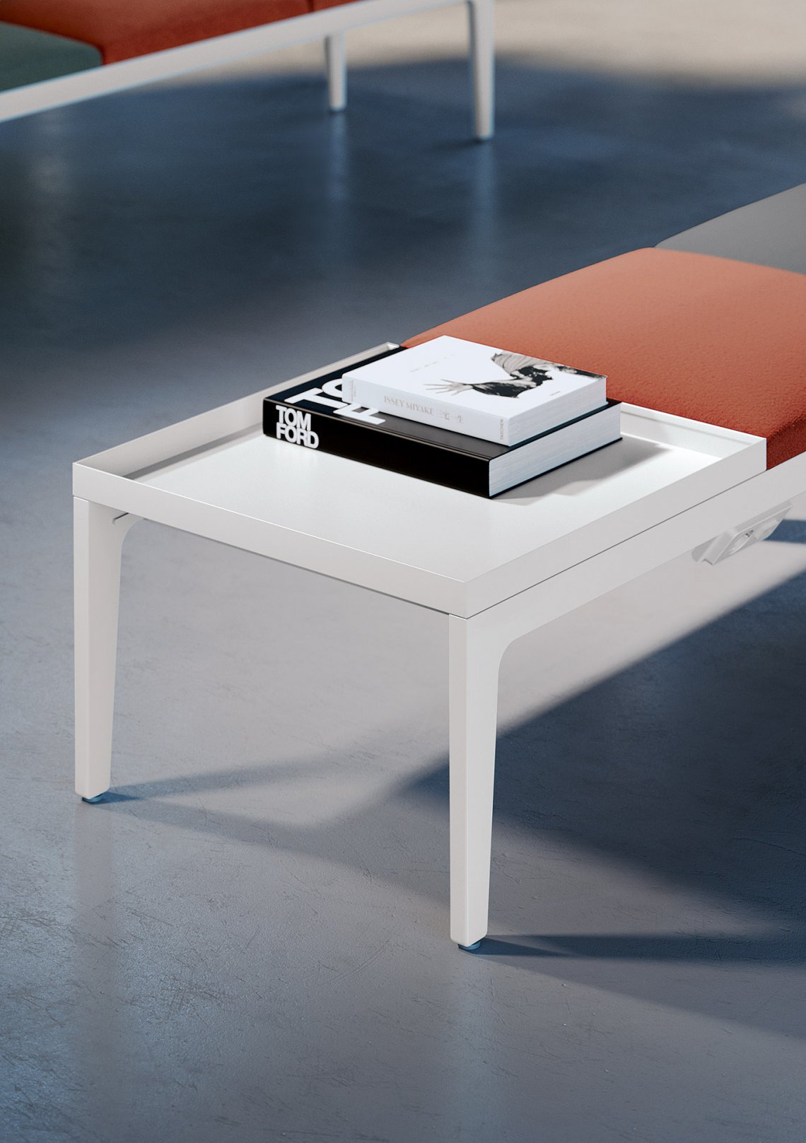 La panca Alplus è adatta a chi deve trascorrere del tempo seduto per relax ma anche per lavorare comodamente. La tecnologia è integrata in diversi elementi d’arredo per una rapida connessione e uno scambio costante di informazioni.