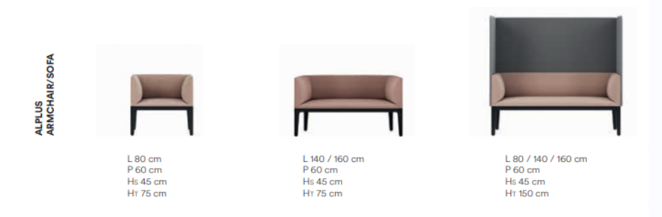 I divani Alplus, proposti in tre lunghezze 80 – 140 – 160 cm, con profondità 60 cm, sono la soluzione ideale per le aree lounge e sale d’attesa, ma sono stati studiati anche per essere inseriti nei moderni ambienti di lavoro.