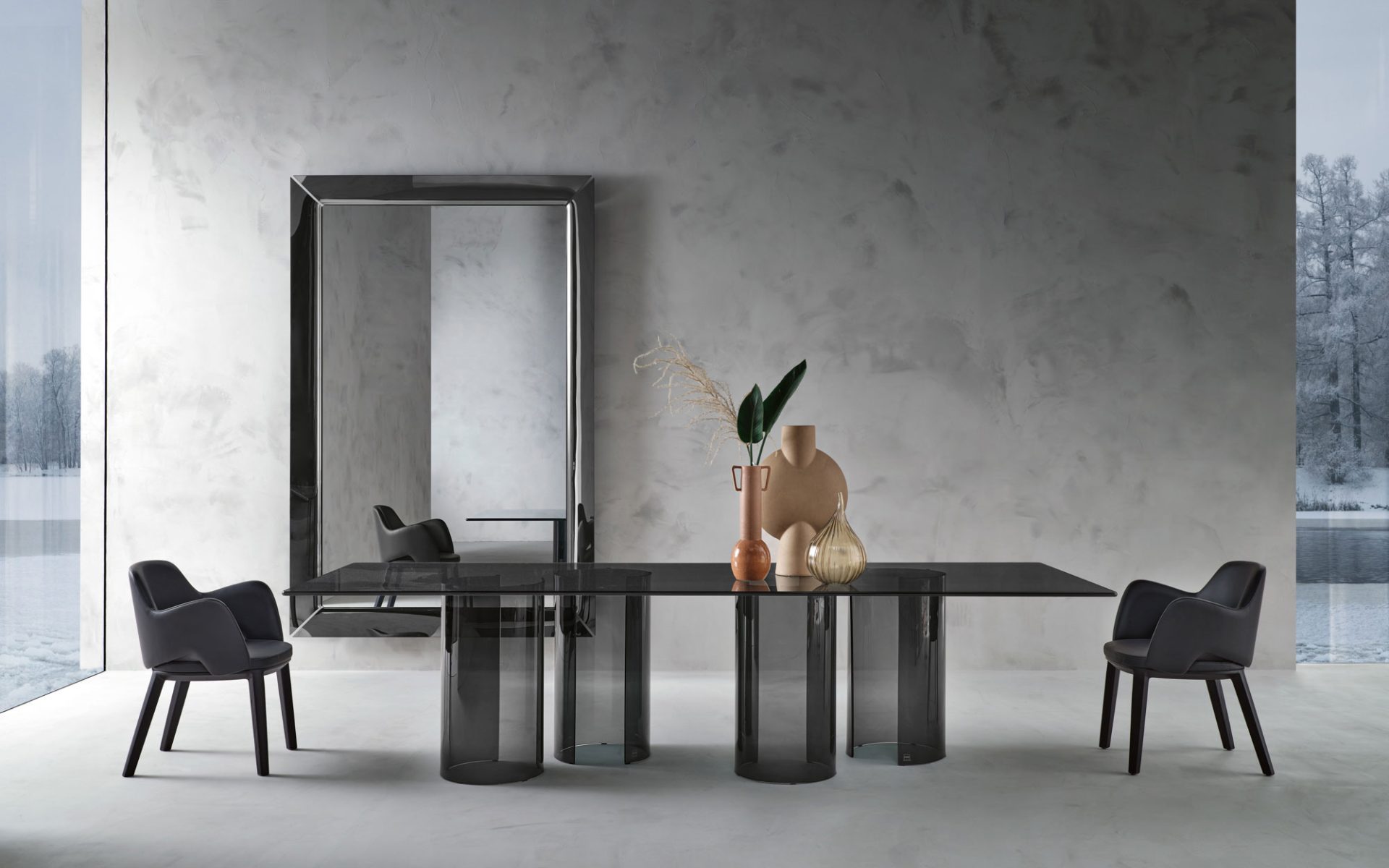 Disponibile anche in vetro semiriflettente color Titanio o in vetro bronzo retroargentato.