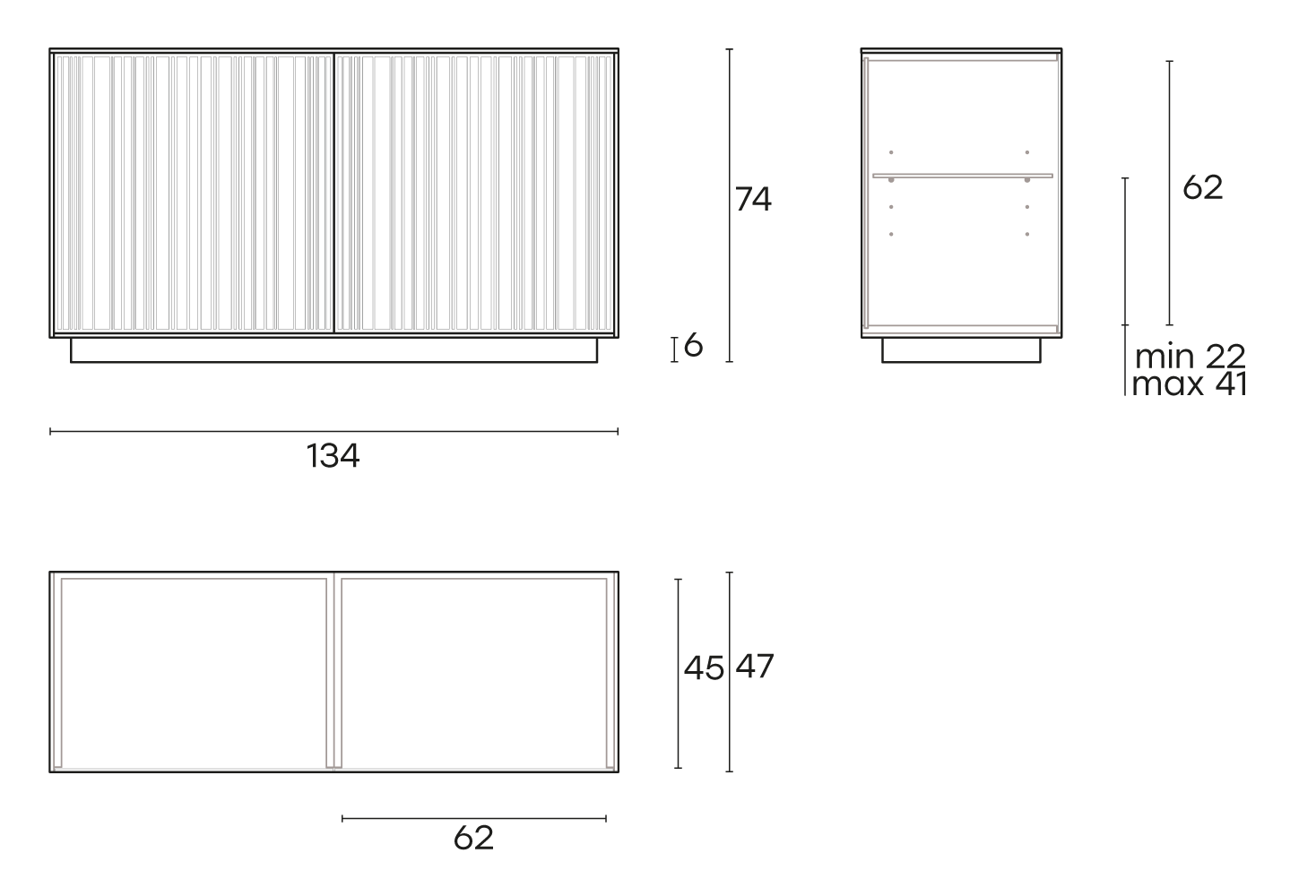 Ripiani interni in vetro fumè da 8 mm temperato.