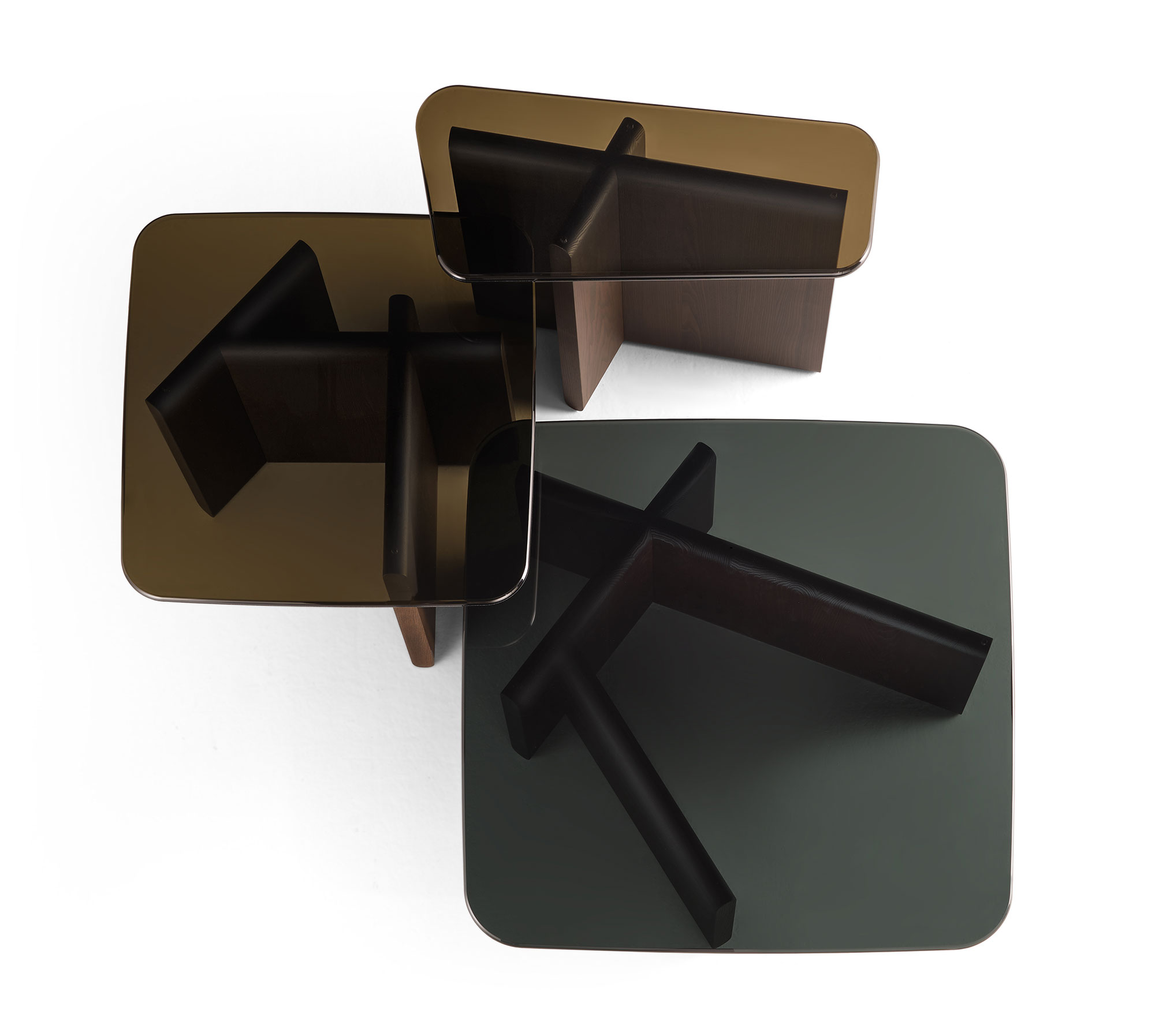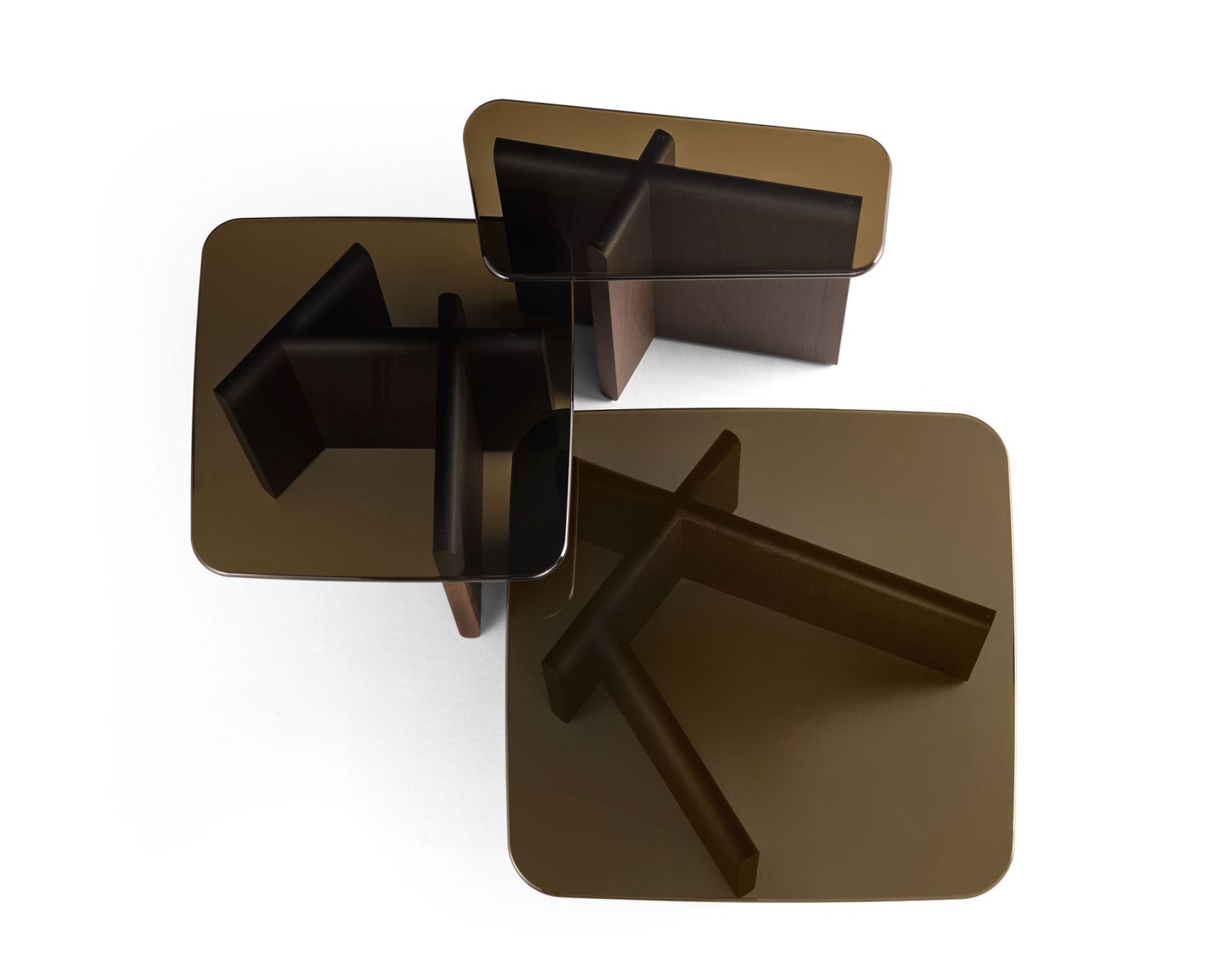 Tavolino con piano in vetro fumè o bronzo stratificato