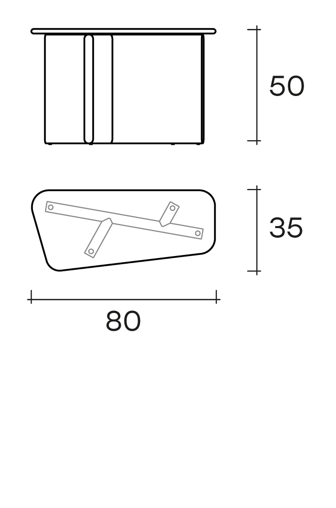 Base in legno massello disponibile nelle finiture Tabacco oppure Termotrattato Nero
