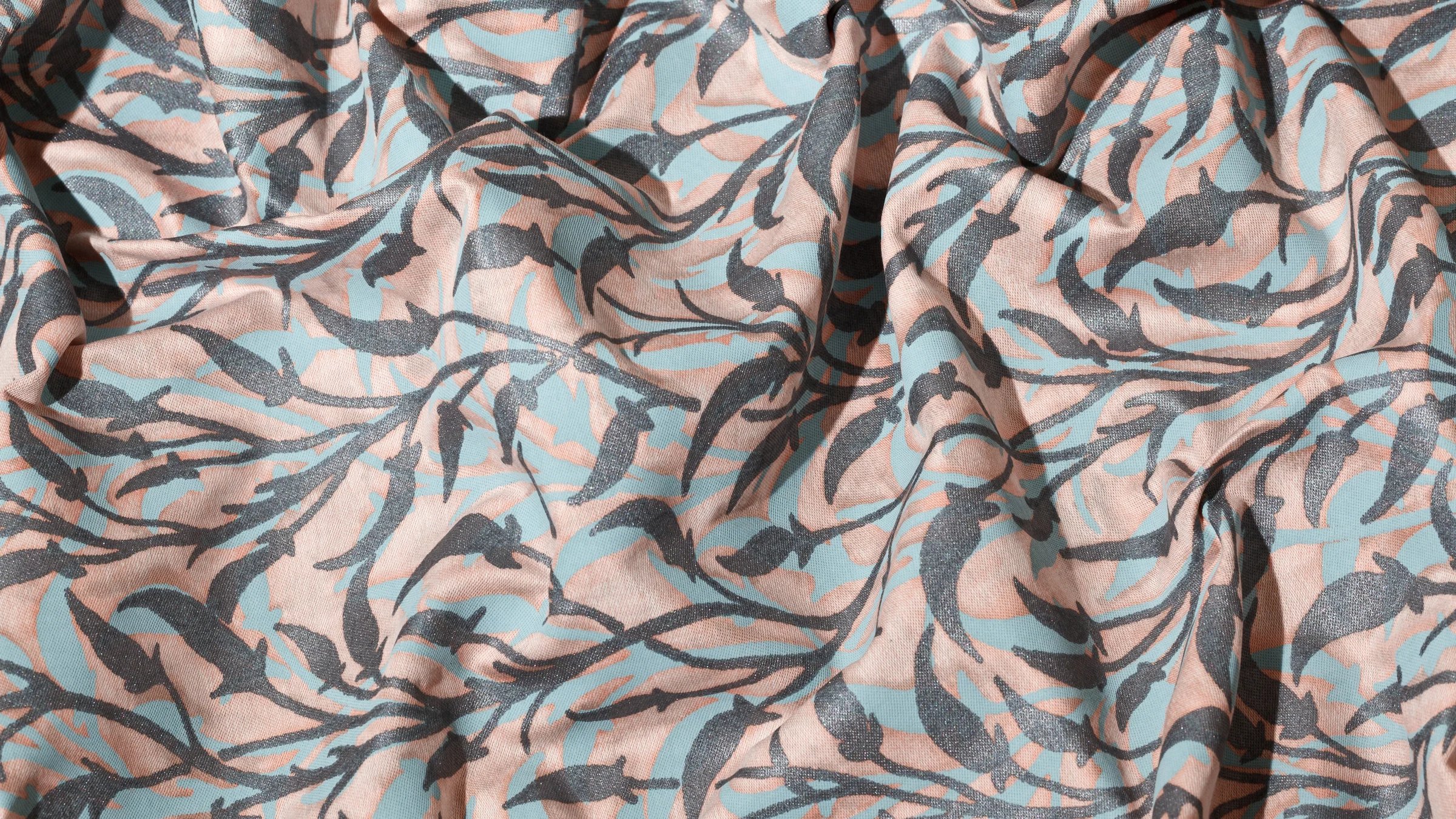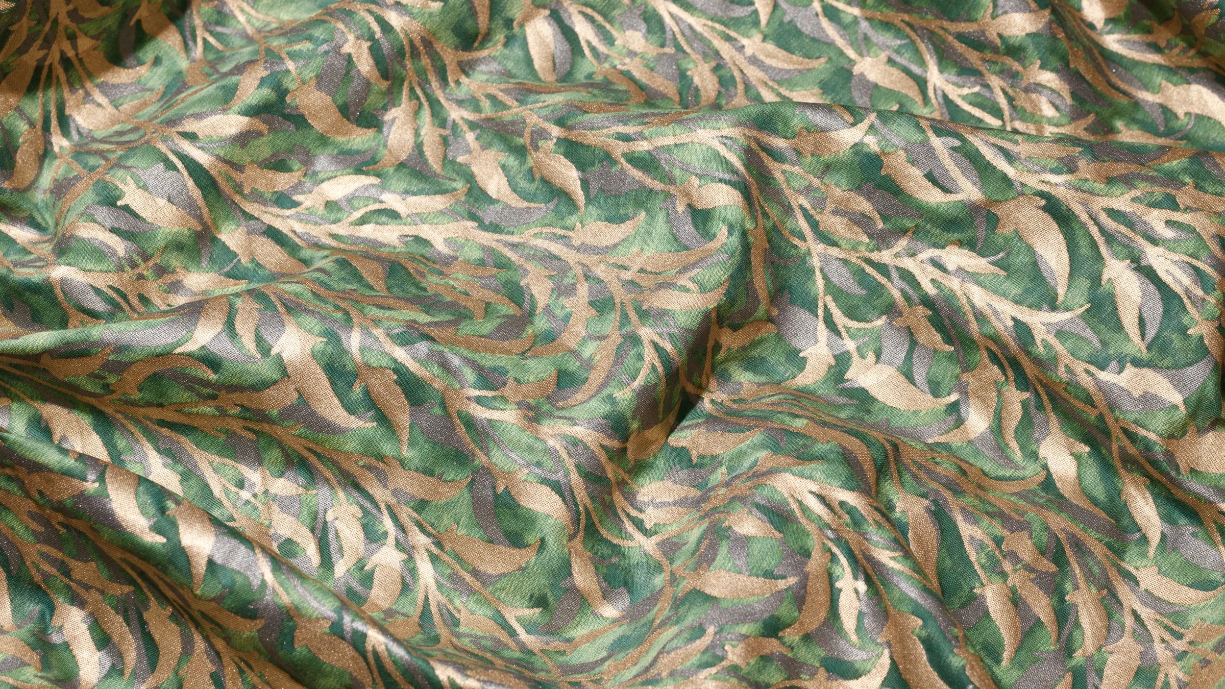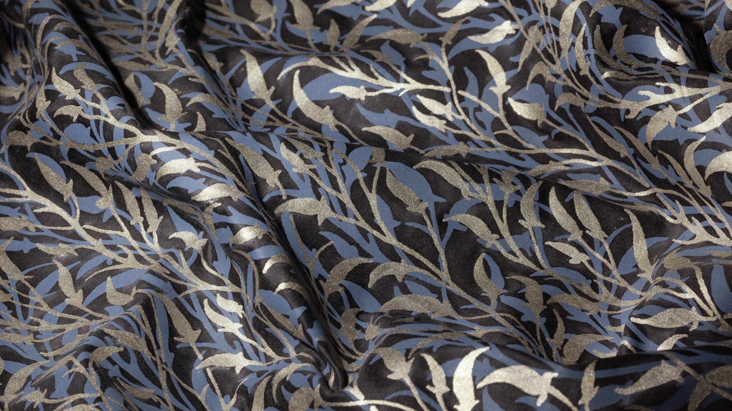 The ancient Greek Orpheus, or ORFEO, was much like Mariano Fortuny, with his seamless ability to move between artforms. A musician, a poet, a prophet, ORFEO’s contributions to the arts were legendary, even causing some Greek poets to proclaim that his music and singing could charm both flora and fauna into dance. The frolicking, layered foliage of our ORFEO is filled with movement and the spirit of song and dance.
