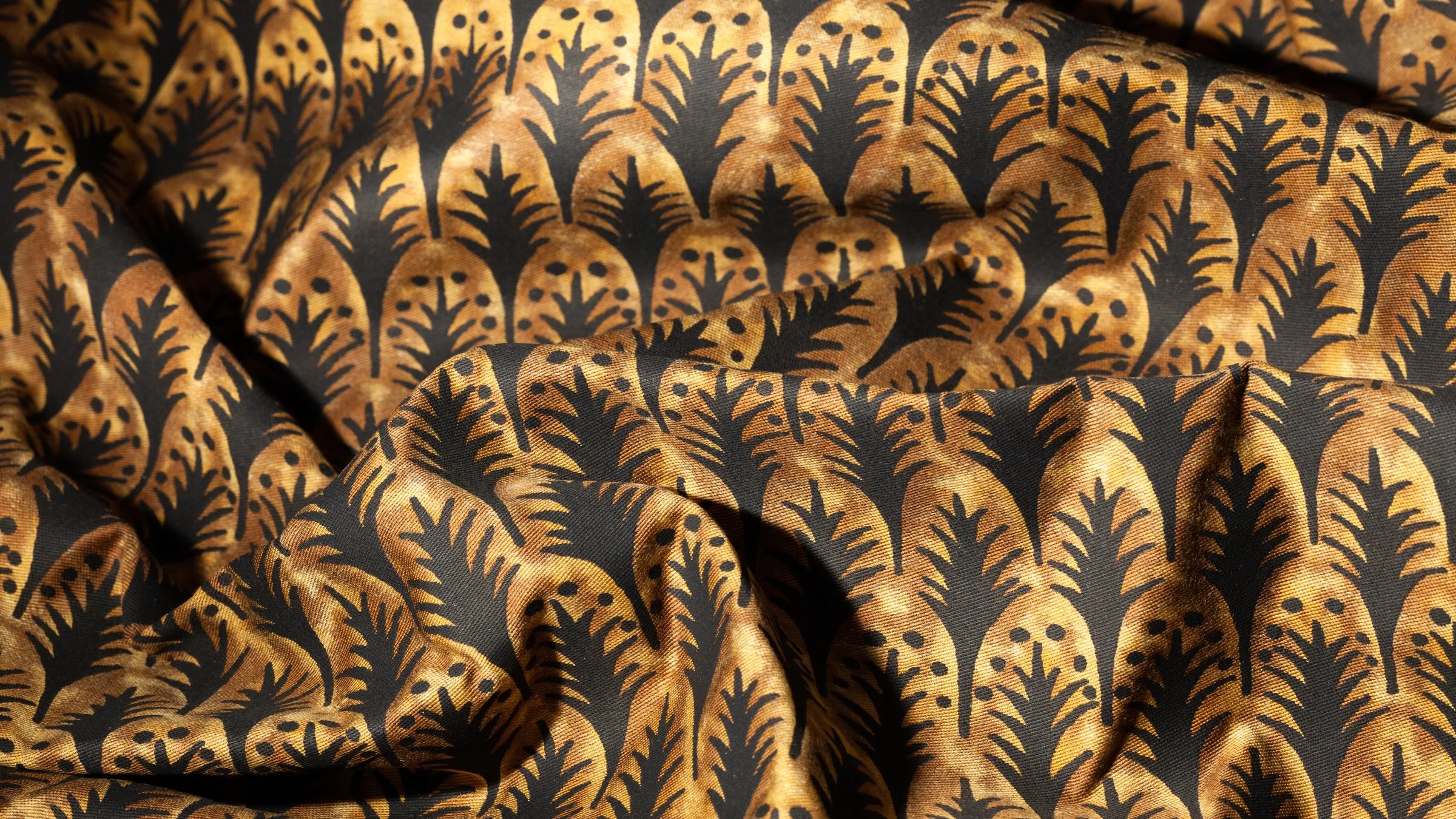 PIUMETTE, Italian for feathers, is a small-scale geometric motif of fanned-out feathers. The Persian-inspired design lauding freedom and transcendence through its connection with birds and flight is one of Mariano Fortuny’s earliest patterns.