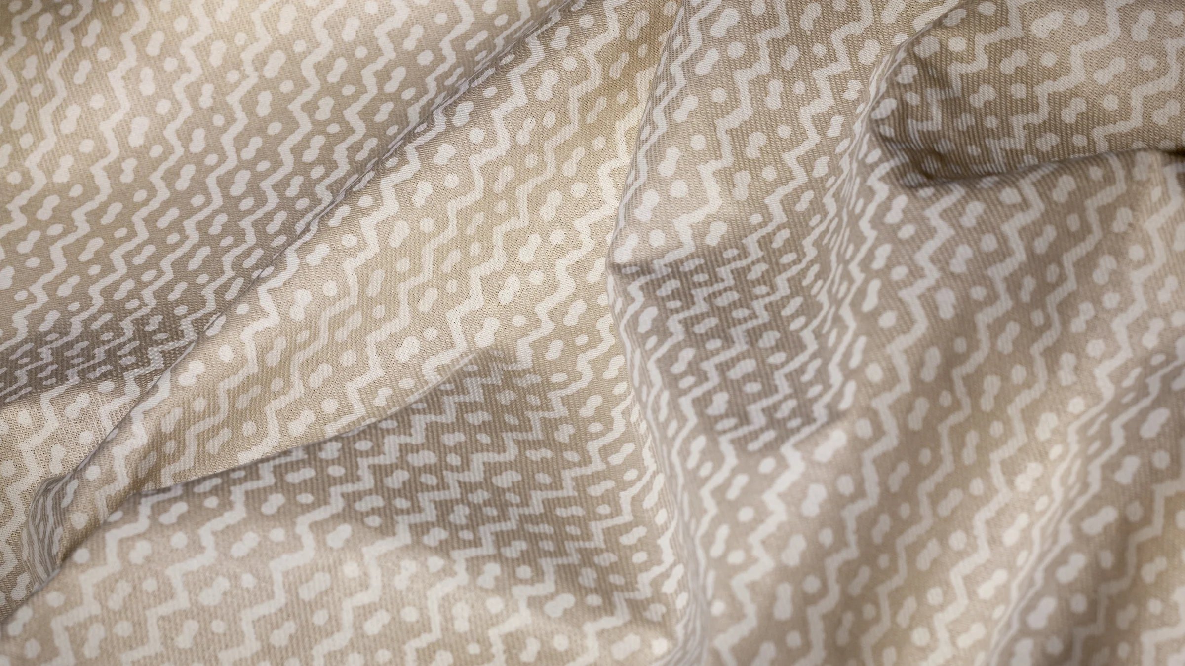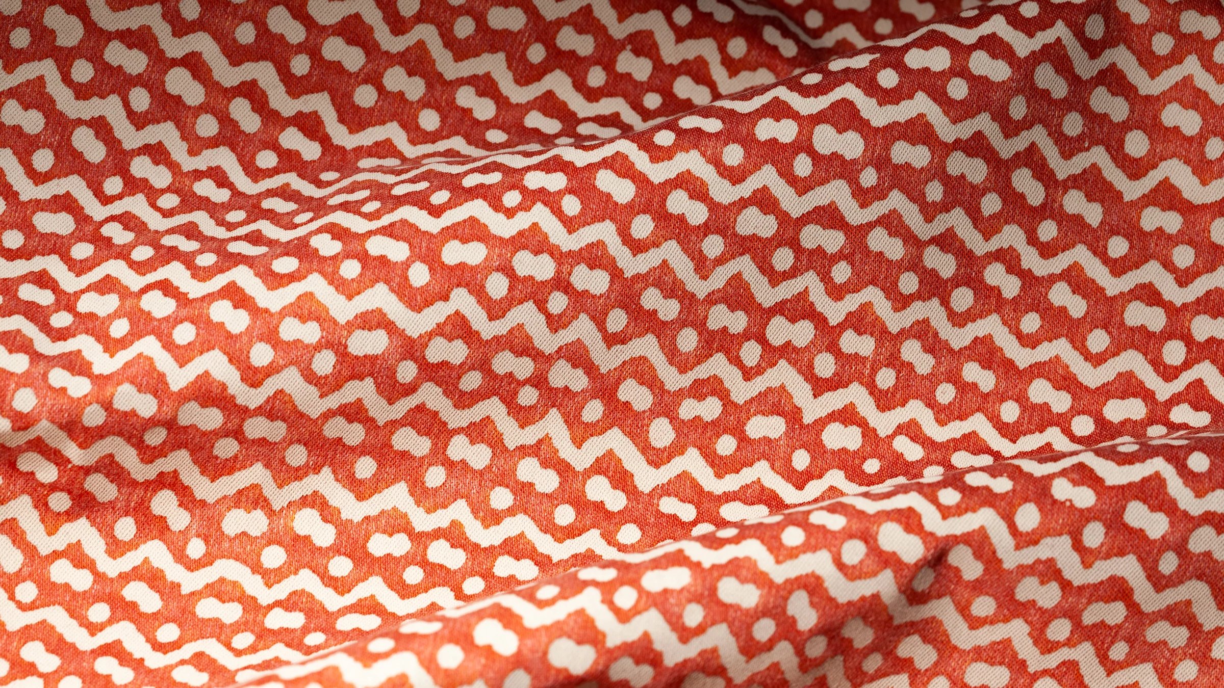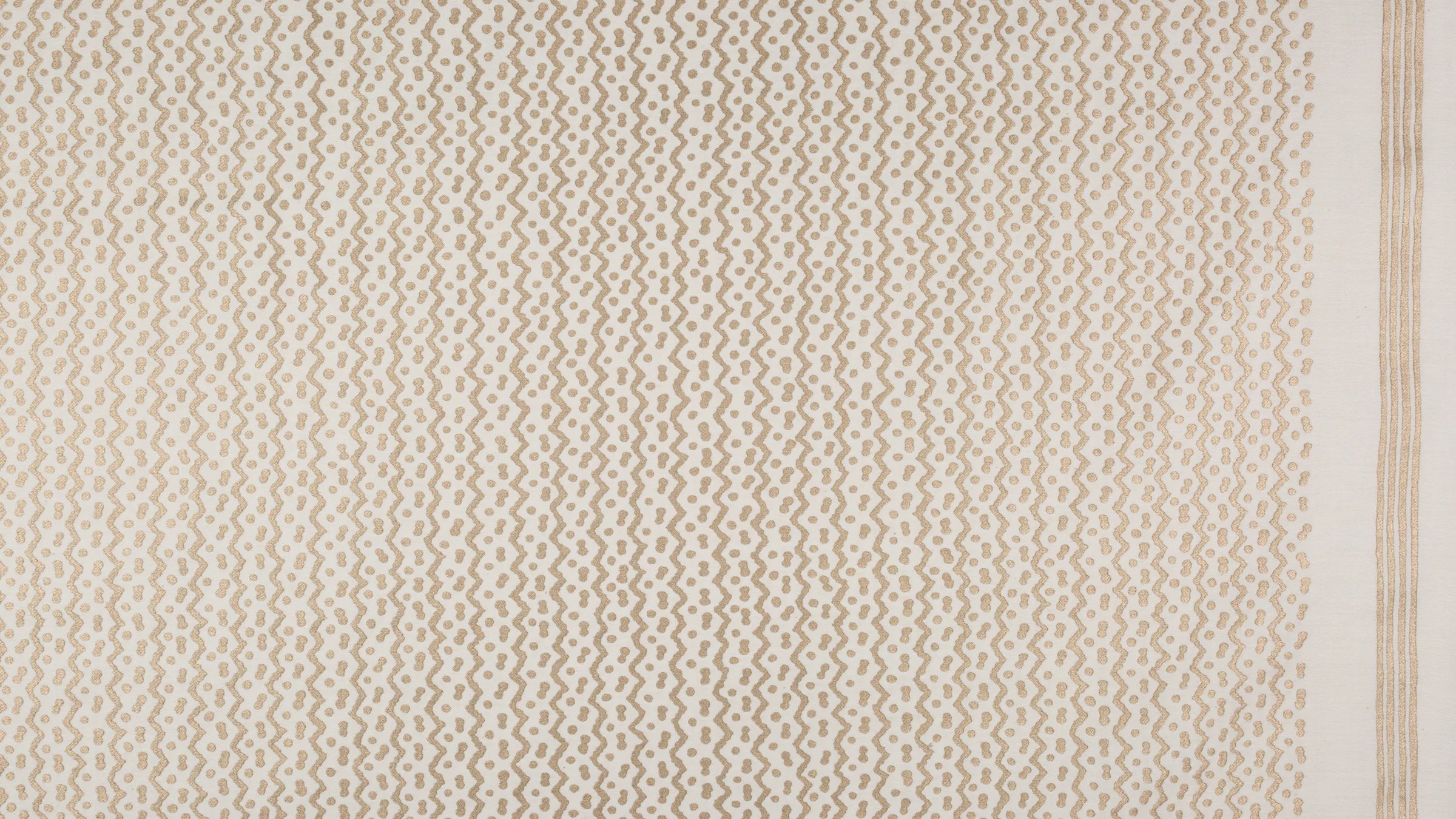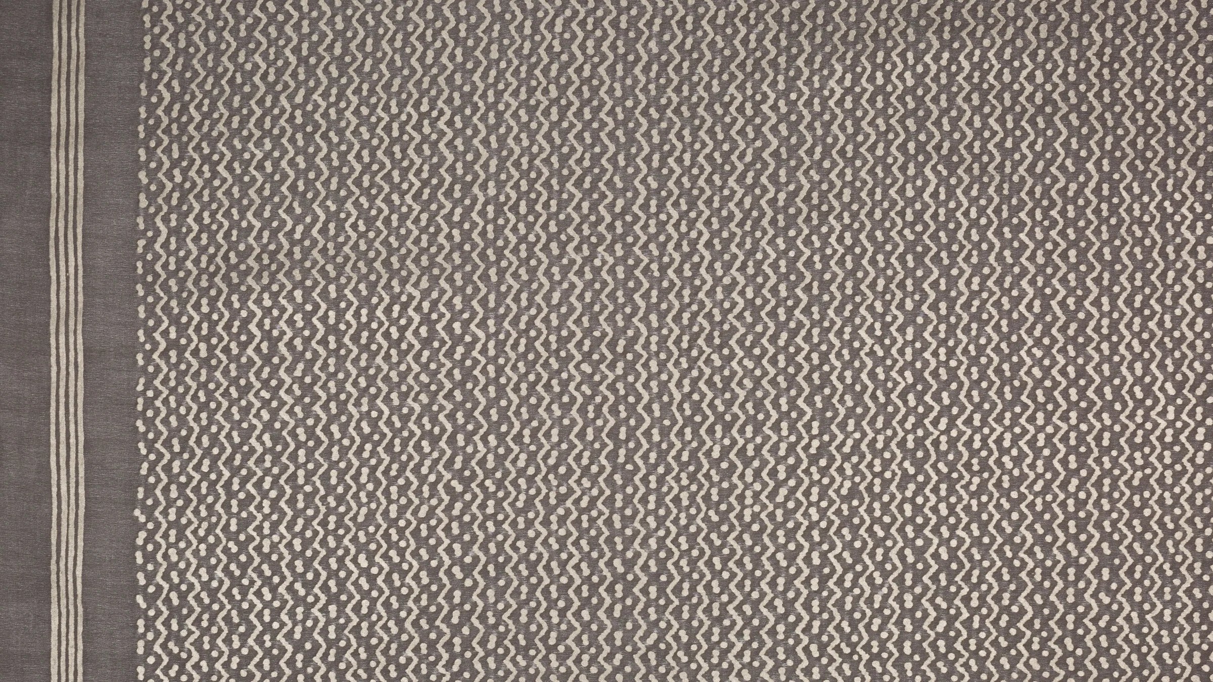 Originally made in the Pacific island nations, TAPA is a barkcloth traditionally decorated by rubbing, stenciling, or dyeing, among other techniques specific to the Tongan, Samoan, and Fijian people. The British Captain Cook first collected the cloths and brought them to the western world in the mid-18th century. In some cultures, the TAPA cloth was an important aspect of gift exchange. The simple mark-making on TAPA likely represents Leva berries (the series of dots) and the ocean’s currents (the zigzag pattern).