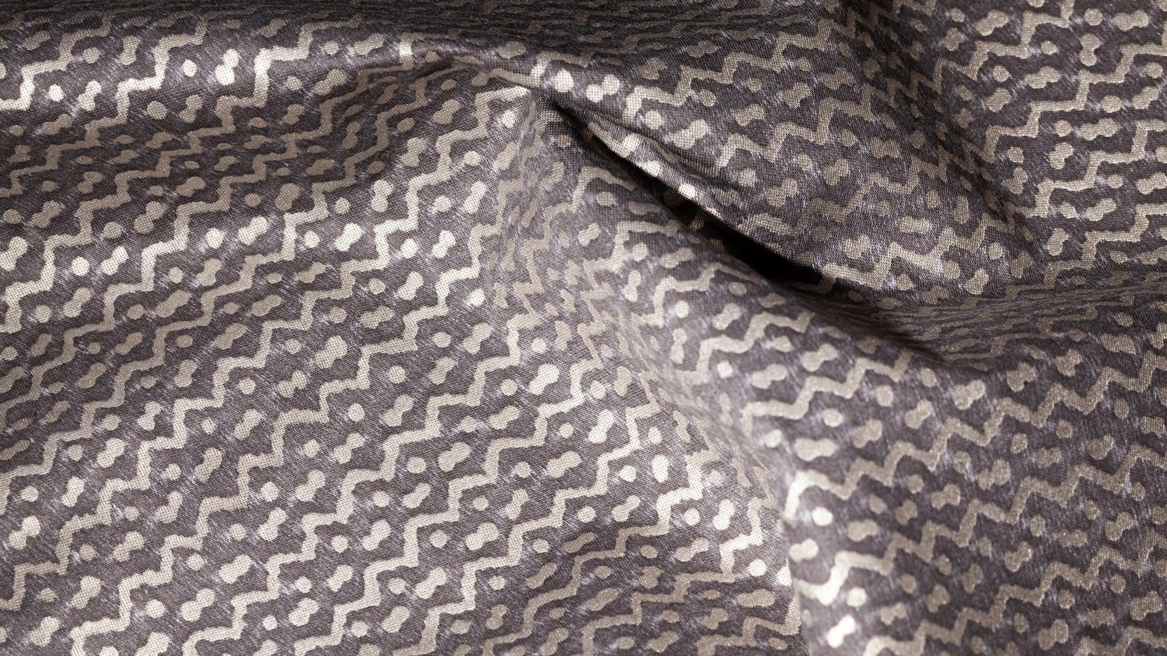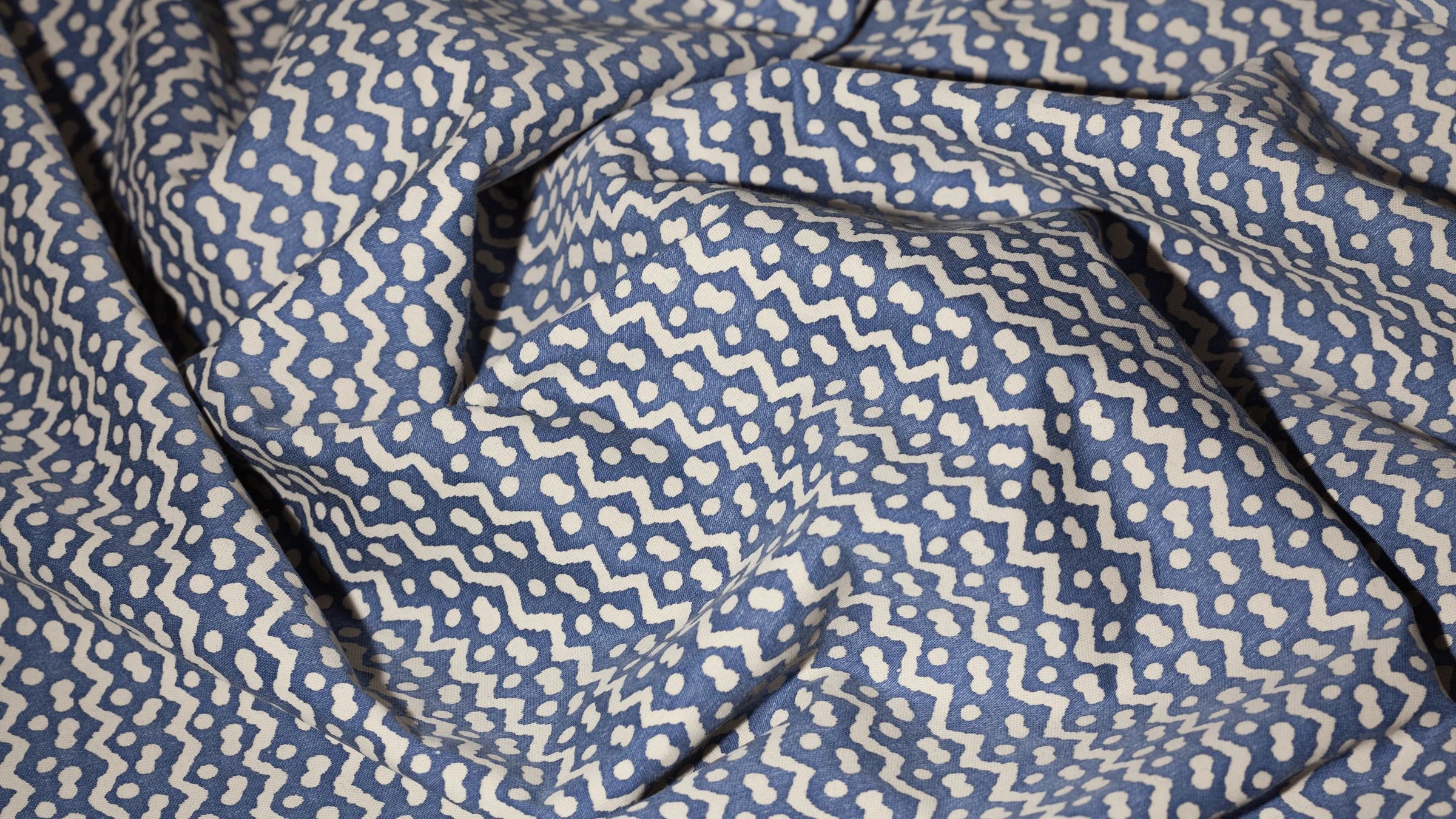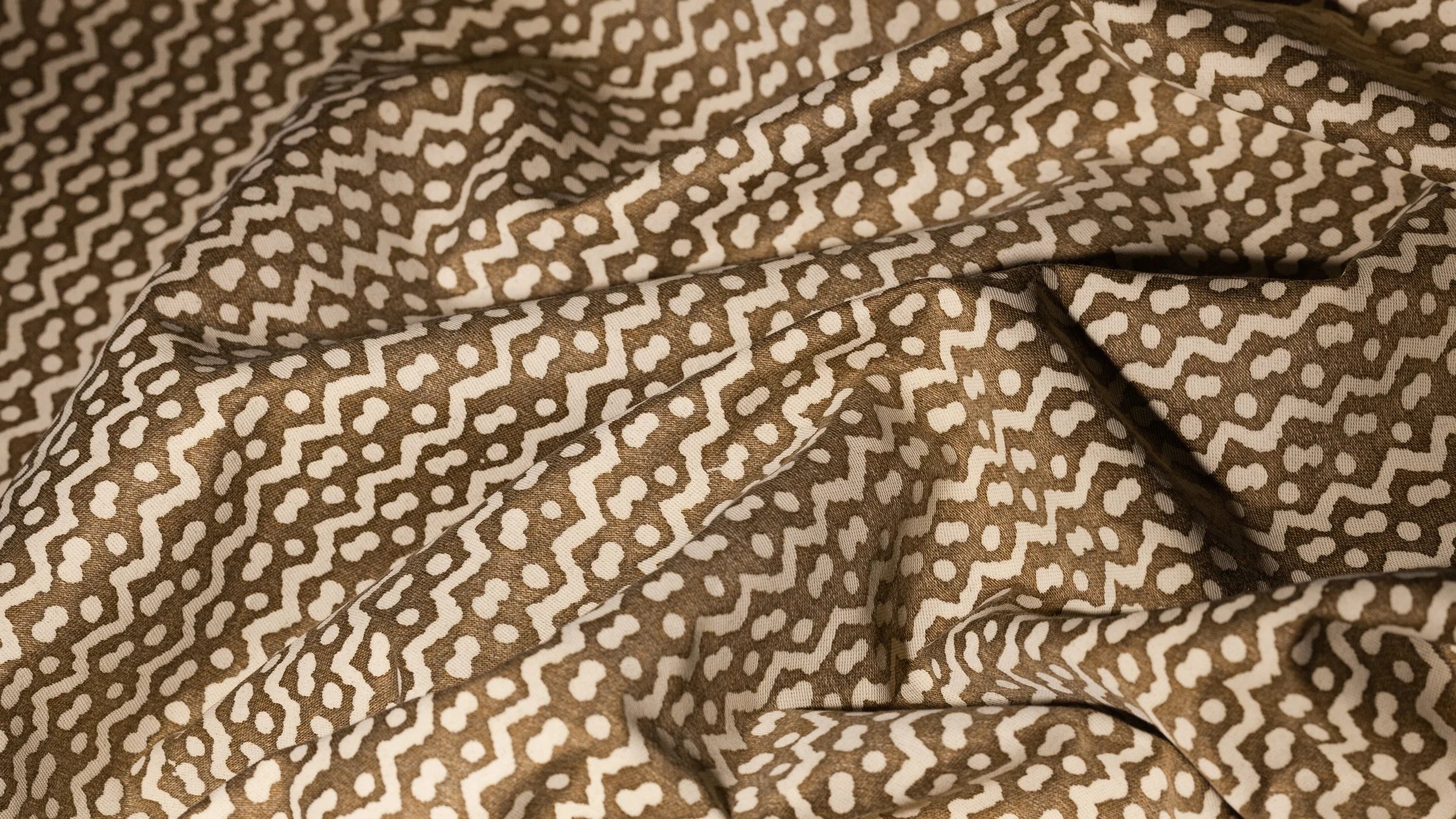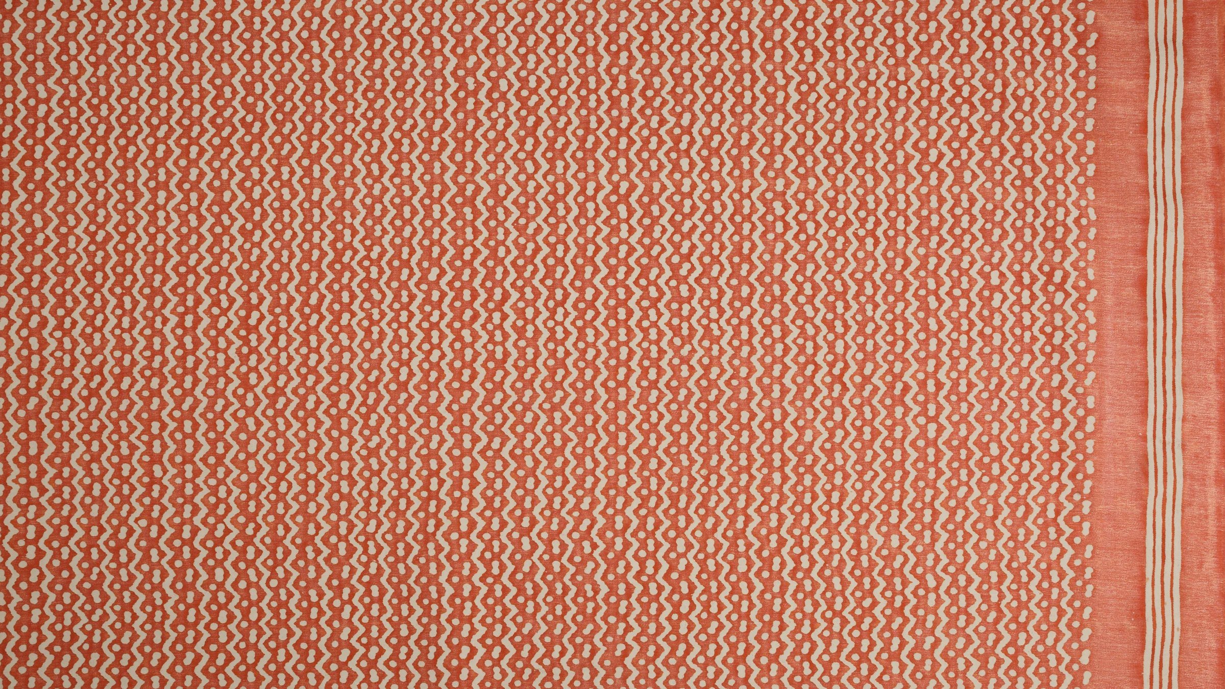 Originally made in the Pacific island nations, TAPA is a barkcloth traditionally decorated by rubbing, stenciling, or dyeing, among other techniques specific to the Tongan, Samoan, and Fijian people. The British Captain Cook first collected the cloths and brought them to the western world in the mid-18th century. In some cultures, the TAPA cloth was an important aspect of gift exchange. The simple mark-making on TAPA likely represents Leva berries (the series of dots) and the ocean’s currents (the zigzag pattern).