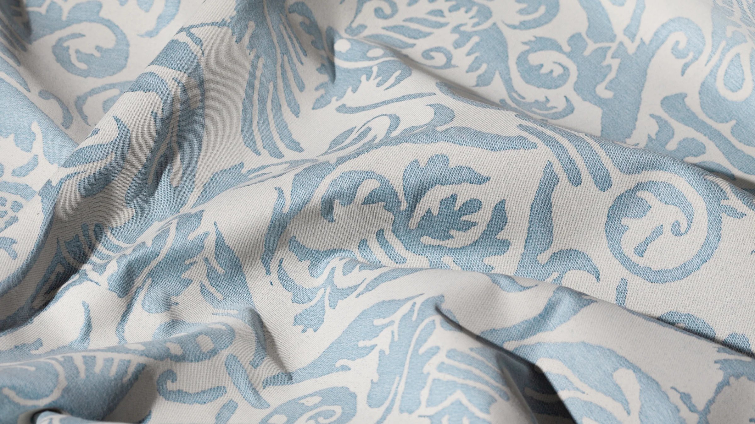 The ribbony vines and intertwining tendrils in UCCELLI, a 17th-century French design, create an elaborate aviary for this charming bird motif. From behind the flowers and foliage comes the sweet song of the wild.
