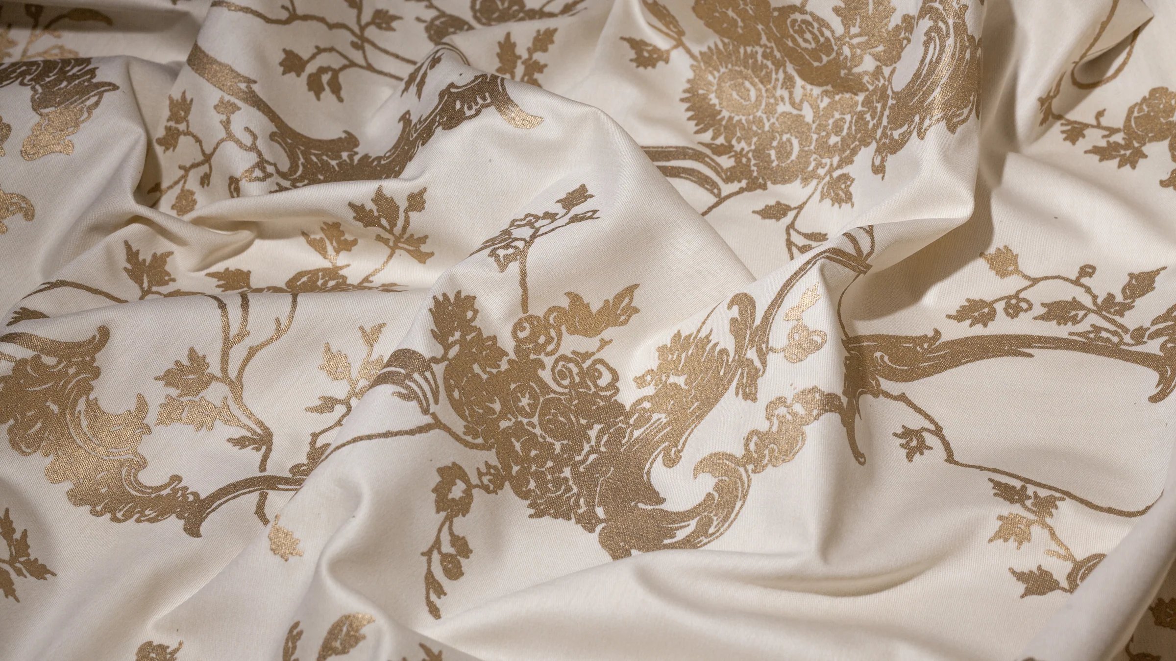 Sparse and lyrical, the vines and flowers of VENEZIANO cascade down the field in a charming, asymmetrical design. Inspired by 18th-century Venetian motifs, VENEZIANO is decorated with delightful sprigs and young blossoms.