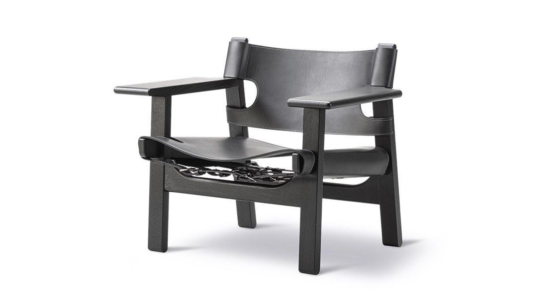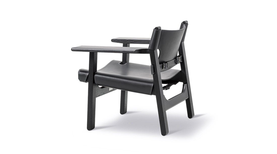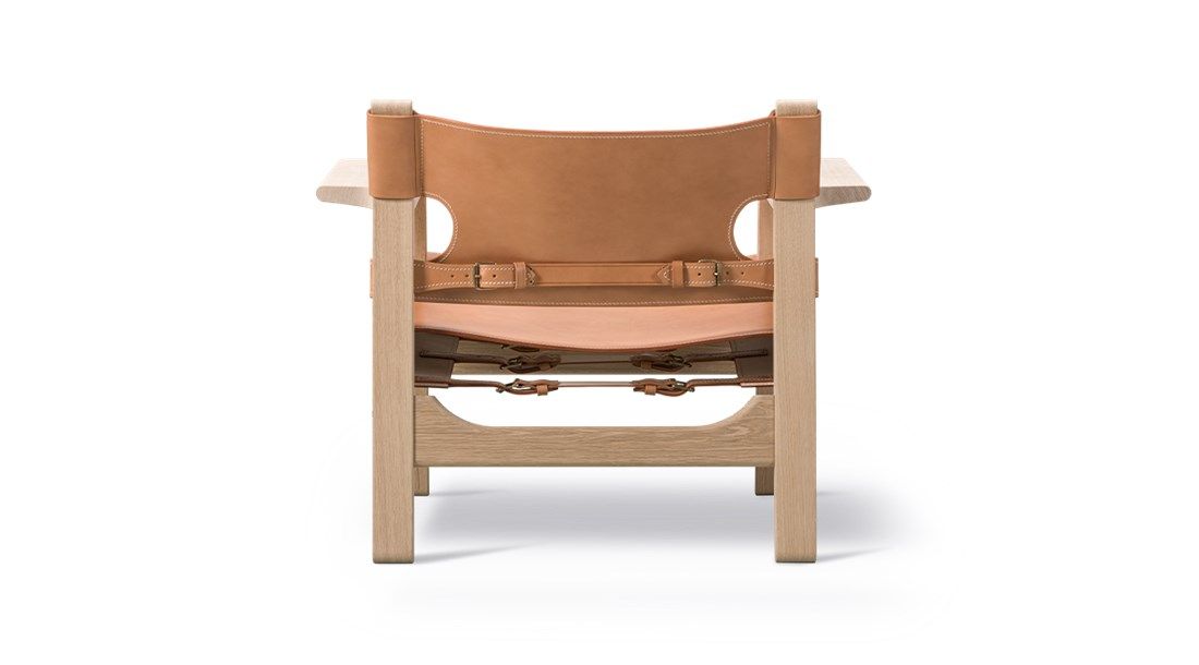The Hunting Chair is one of Mogensen’s most eye-catching designs. Seen from the side, what’s most notable about the chair is the sharp diagonal slope from the edge of the front seat measuring only 30 cm above the floor. The overall look and logical construction were inspired by Spain’s medieval Andalusian furniture, something that Mogensen would return to time and time again, as seen in his subsequent development of The Spanish Chair.