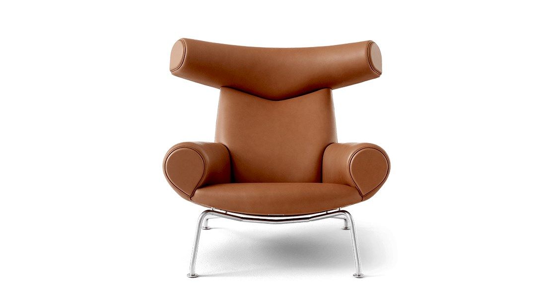 The Ox Chair by Hans J. Wegner is an iconic statement piece with an irrefutable presence. A bold, sculptural chair that challenged the understated aesthetics of Danish design at the time, with its distinctive headrest referencing ox horns and its voluminous body. It demonstrates his organic, artistic approach to furniture and desire to redefine traditional seating.