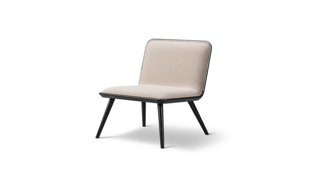 Spine Lounge Wood Base is a light lounge chair. The accented detailing on the front upholstered seat in leather or textile combined with a back in oak makes the chair as beautiful standing mid-room as it is against a wall.