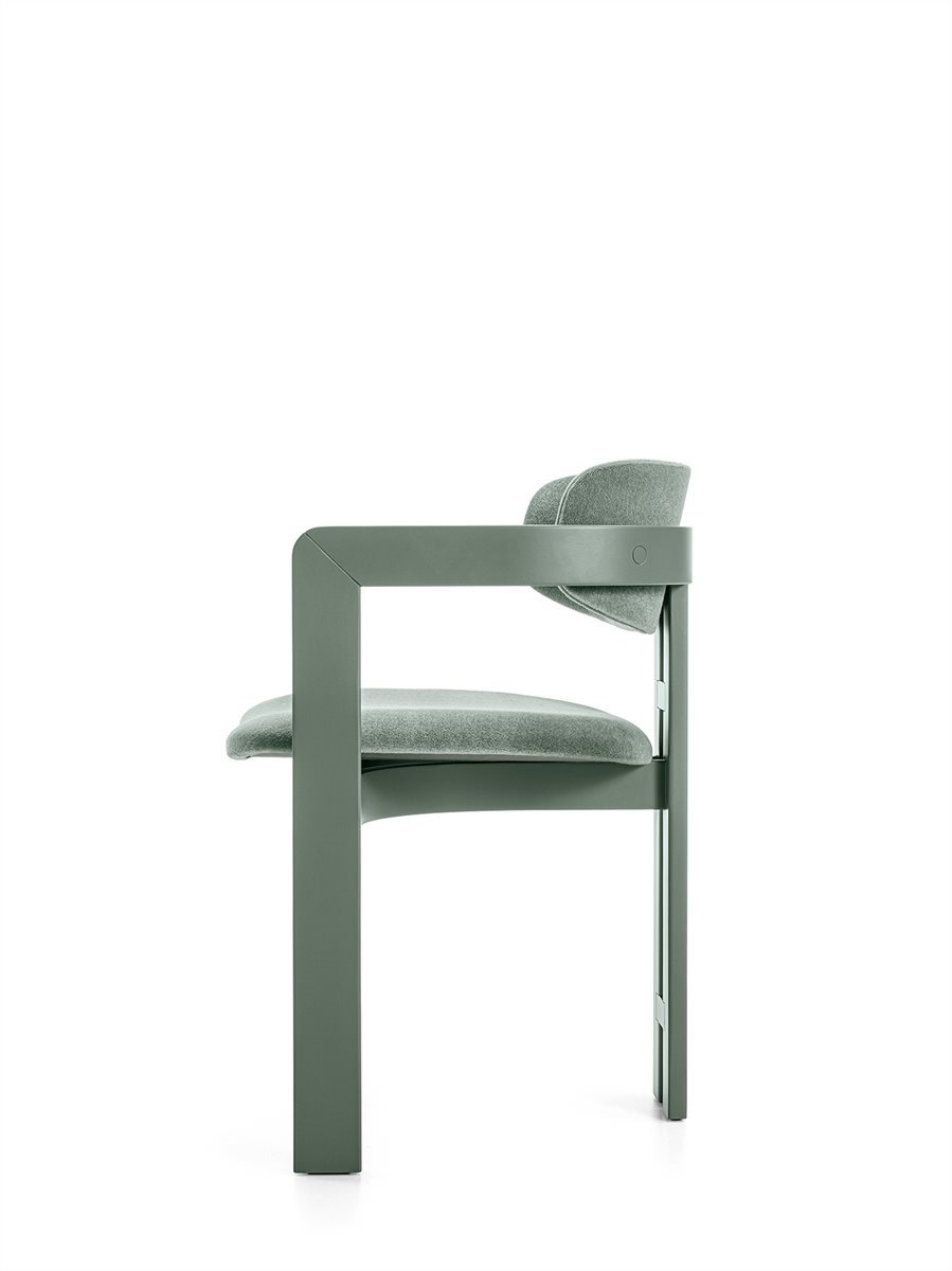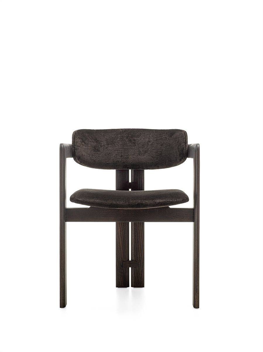Poltroncina con struttura in massello di legno curvato. Disponibile in frassino naturale o in frassino tinto nero poro aperto, tinto tabacco poro aperto, tinto "Pure" bianco poro aperto o tinto grigio smoke poro aperto. NEW Disponibile in frassino tinto creta poro aperto, tinto wengè poro aperto o tinto cenere poro aperto. Disponibile anche versione in faggio laccato opaco poro chiuso nei colori “Rosa Jaipur”, “Verde Provenza”, “Bianco Camargue”, “Bordeaux Etruria” e "Sabbia del Nilo". Seduta e schienale con struttura interna in legno e derivati con imbottitura in poliuretano espanso indeformabile a densità differenziate. Rivestimento in tessuto o pelle nei colori del campionario. Non sfoderabile.