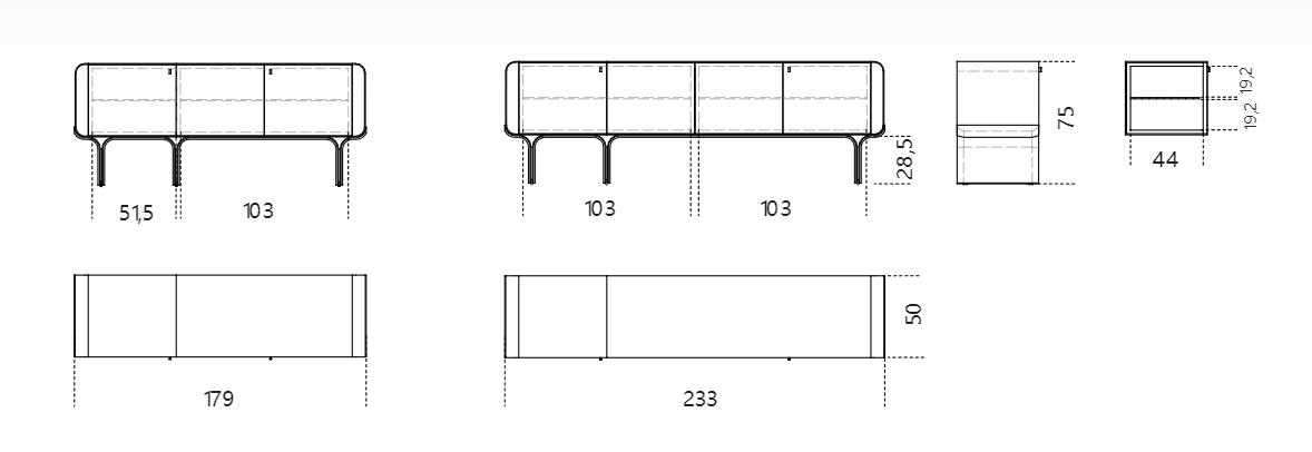 Madia con base in frassino curvato tinto nero poro aperto e dettagli in ottone lucido. Contenitore in legno rivestito in pelle fard nei colori del campionario. Dotata di ripiano interno in cristallo extralight 10mm temperato.