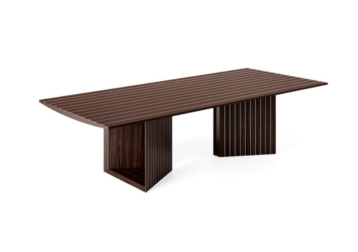 Table with top and bases in India rosewood laid in line with aluminium.