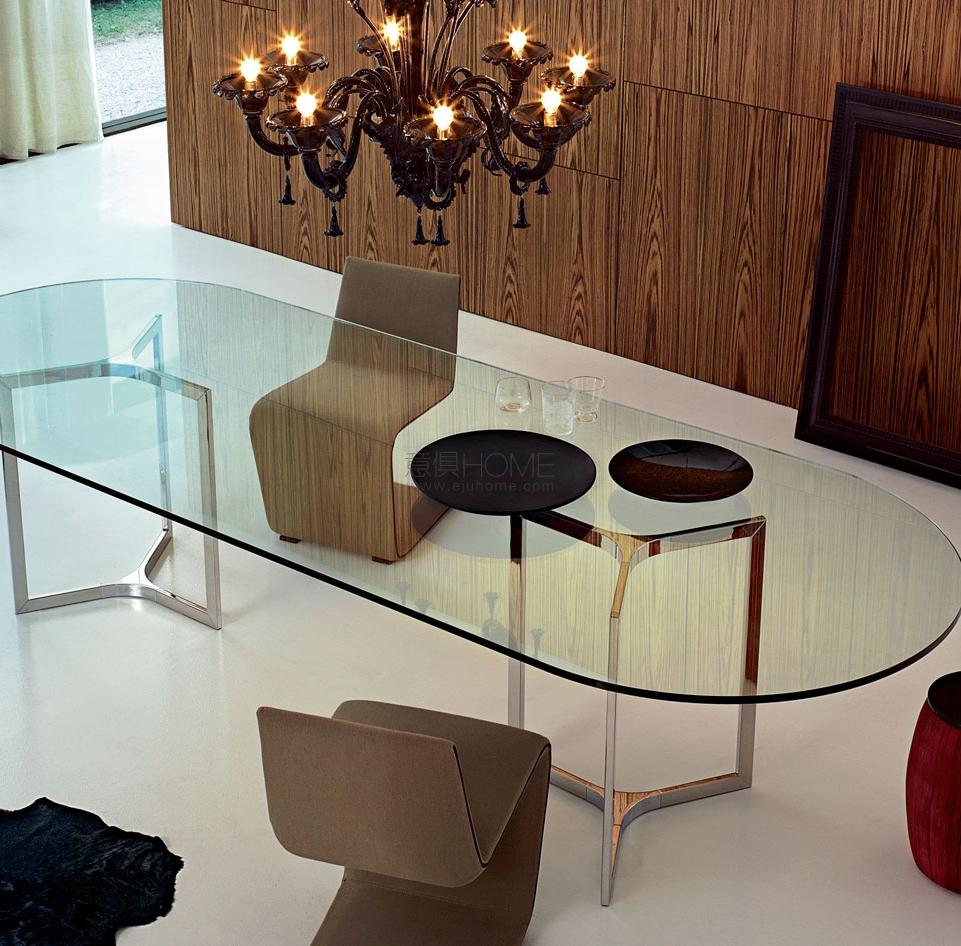 Raj Table with transparent glass top, available oval or rectangular shape. Bright stainless steel base with bright steel insert. Chromed aluminium central part. Raj Light Table with transparent glass top. Bright stainless steel base. Chromed aluminium central part.