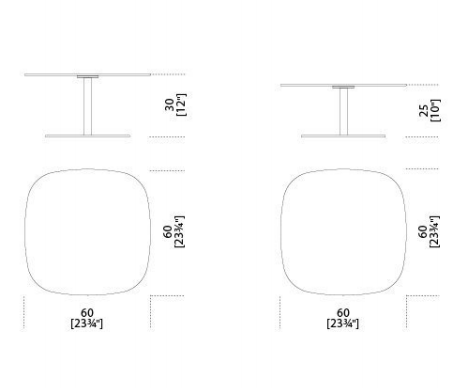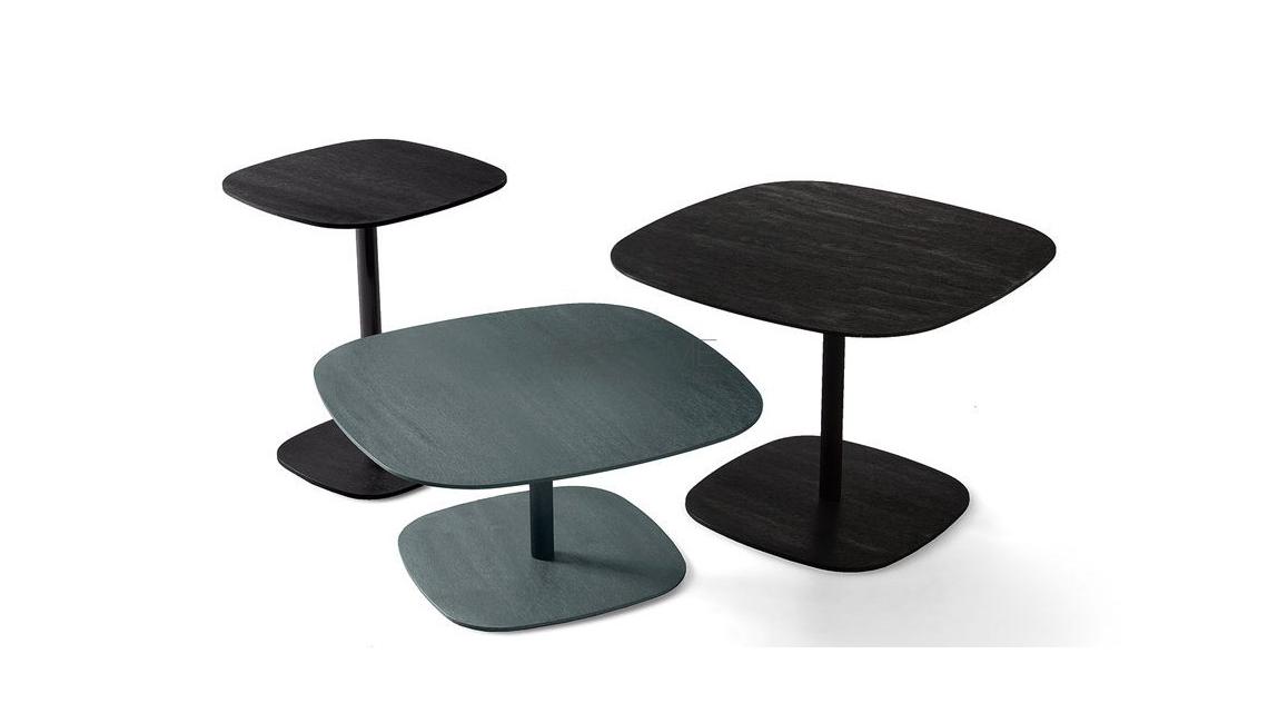 Coffee table with top and structure in handbrushed aluminium in the colours black or titanium grey.